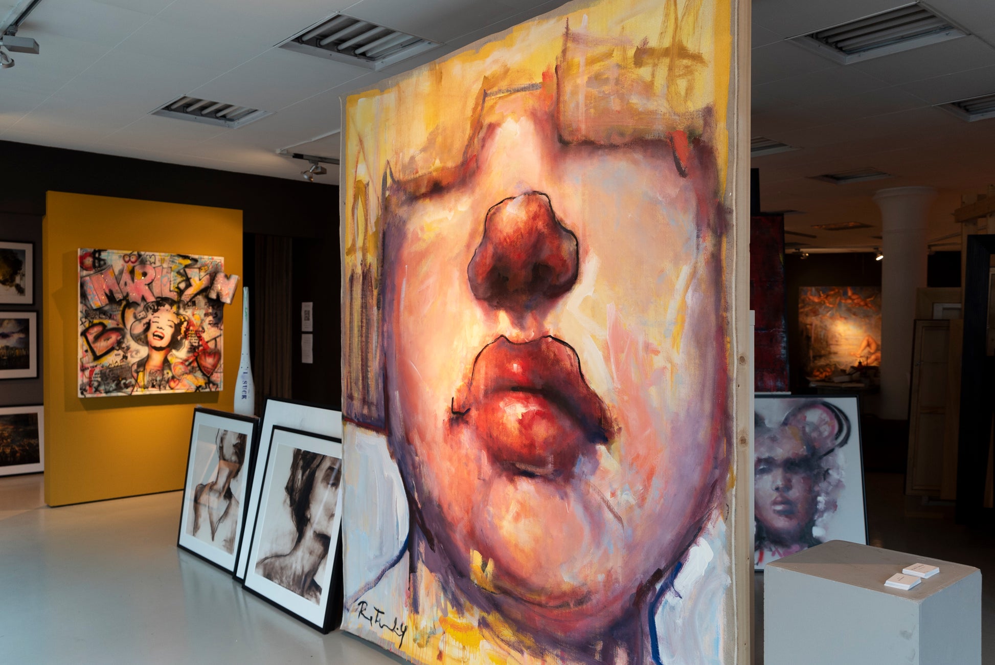 Lovely and playful portrait that stretches a full 2.5 meters from the floor, made on Belgian linen in line with an old recipe. This painting demands its own wall and will definitely give the room a very special touch. Height: 2.5m Width: 2m.